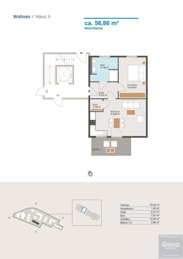 Wohnfläche ca.56,86 m²